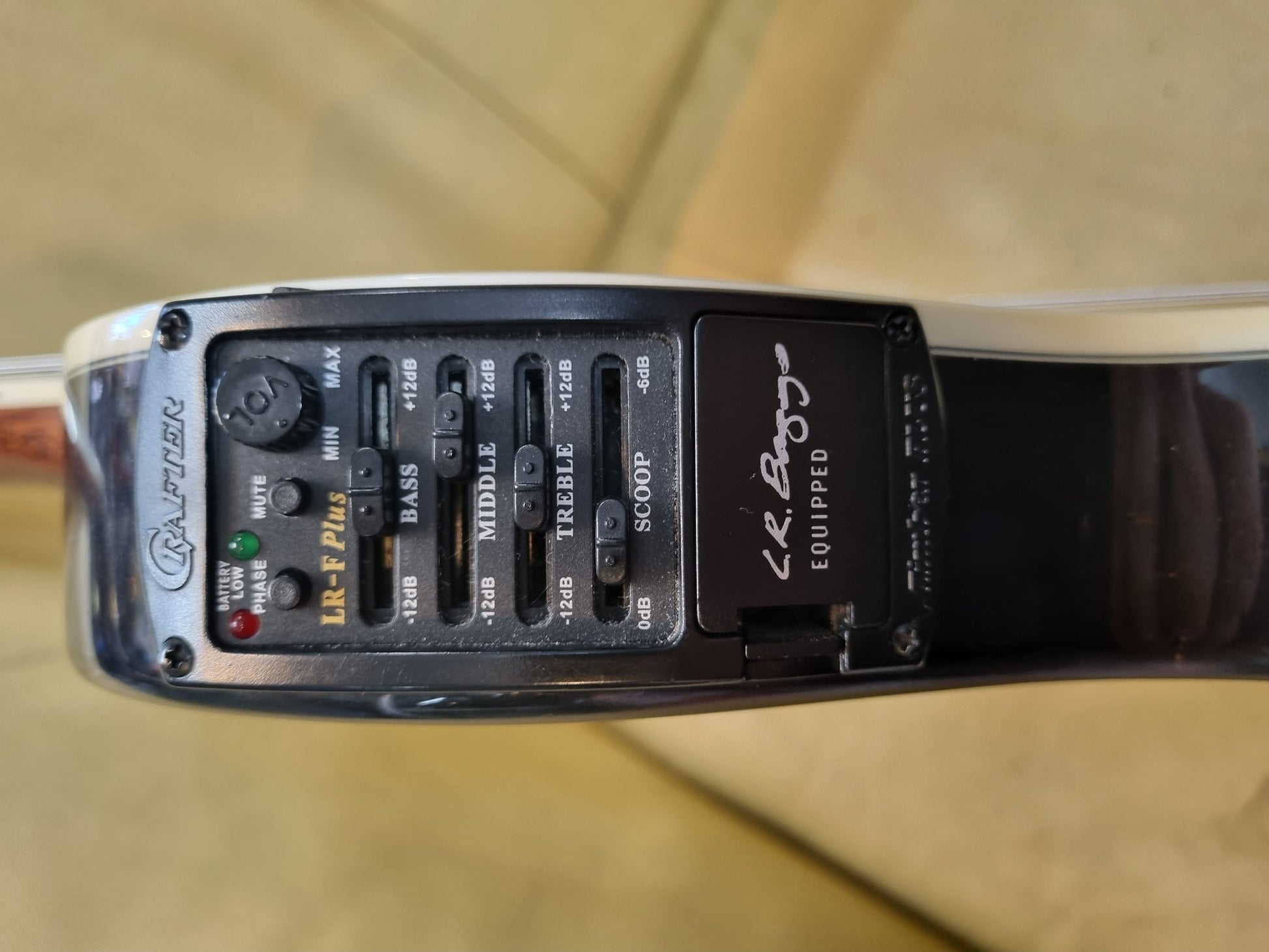 This thinline nylon string guitar features a comfortable, erganomic body shape, good volume acoustically and lovely fit and finish. Where it really shines is in its high quality LR Baggs pickup, making it the perfect workhorse for amplified playing. Its in good played condition with some superficial scratches and honest playwear.