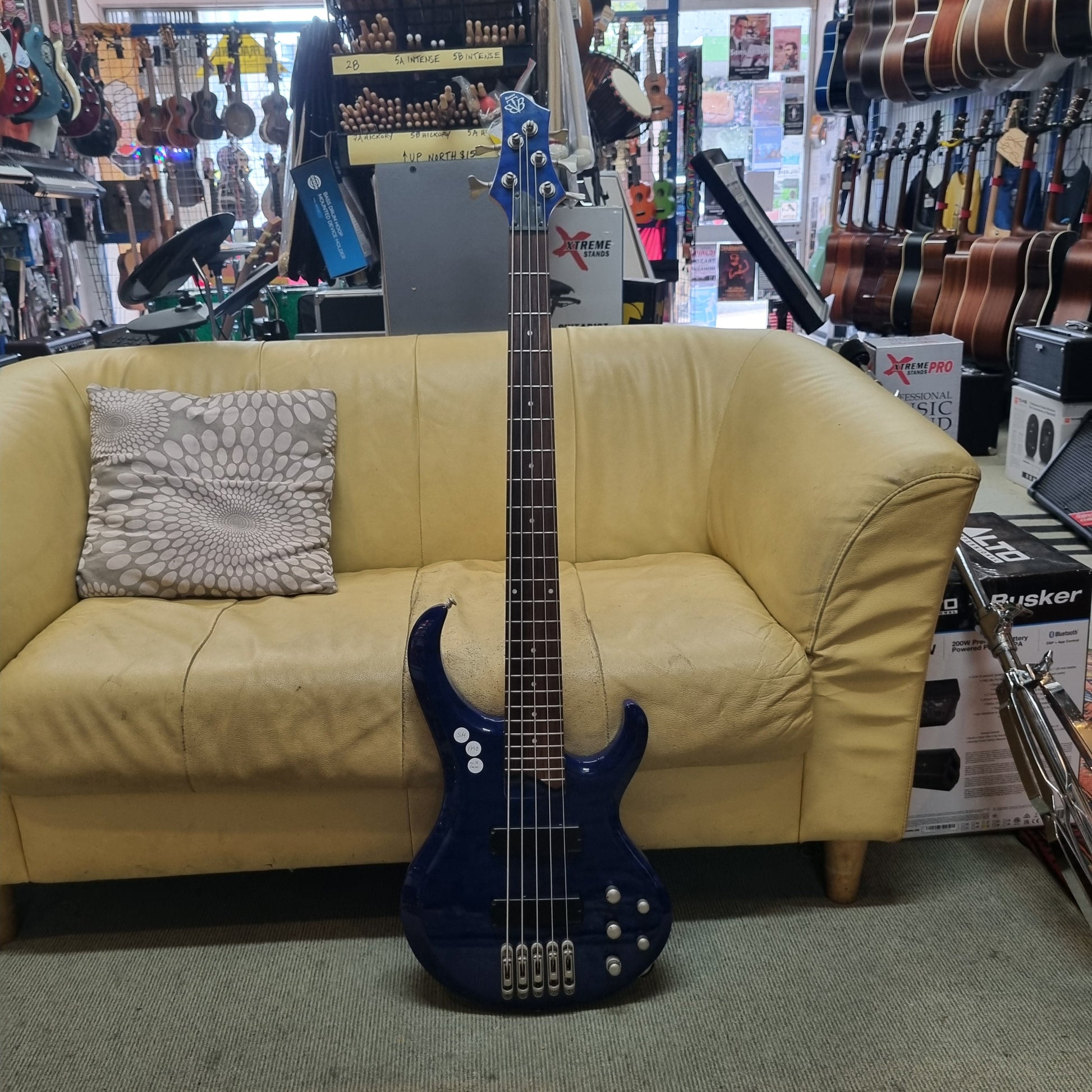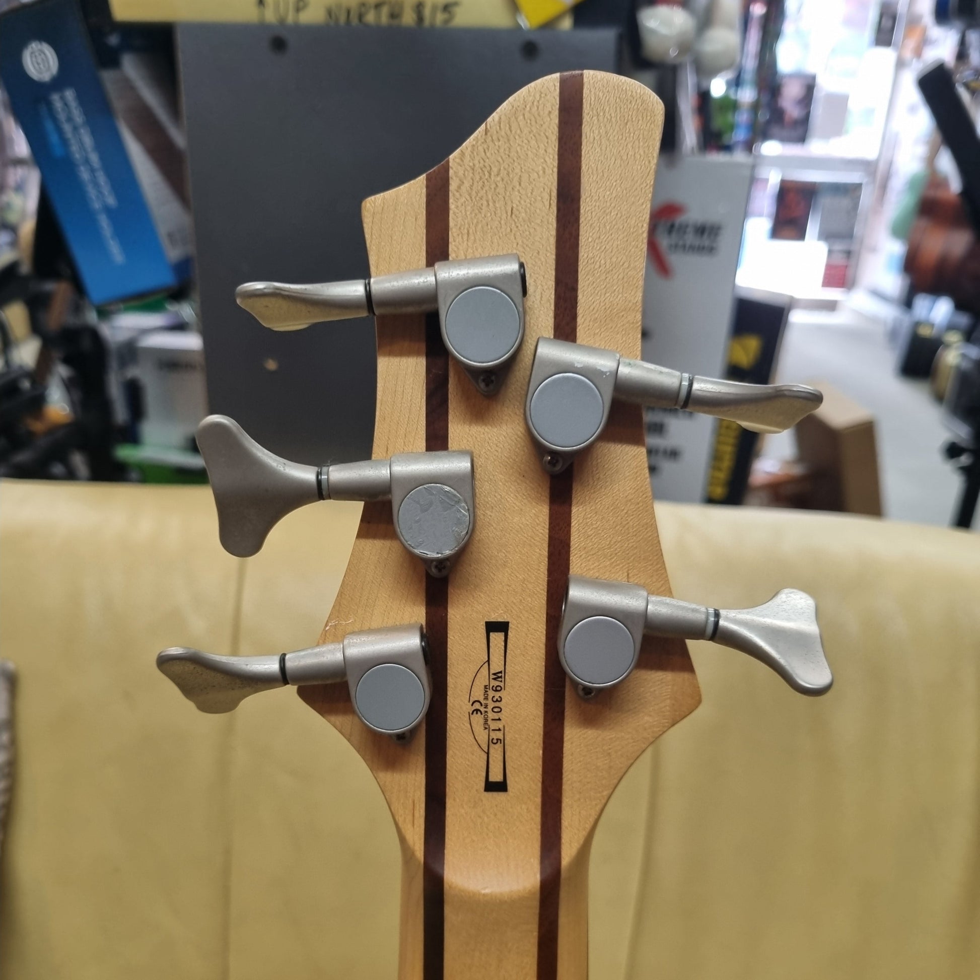 The BTB405QM is a five string solid body electric bass model introduced by Ibanez for 2001. It was produced by World Musical Instrument Co. in Incheon South Korea as part of the Standard line.