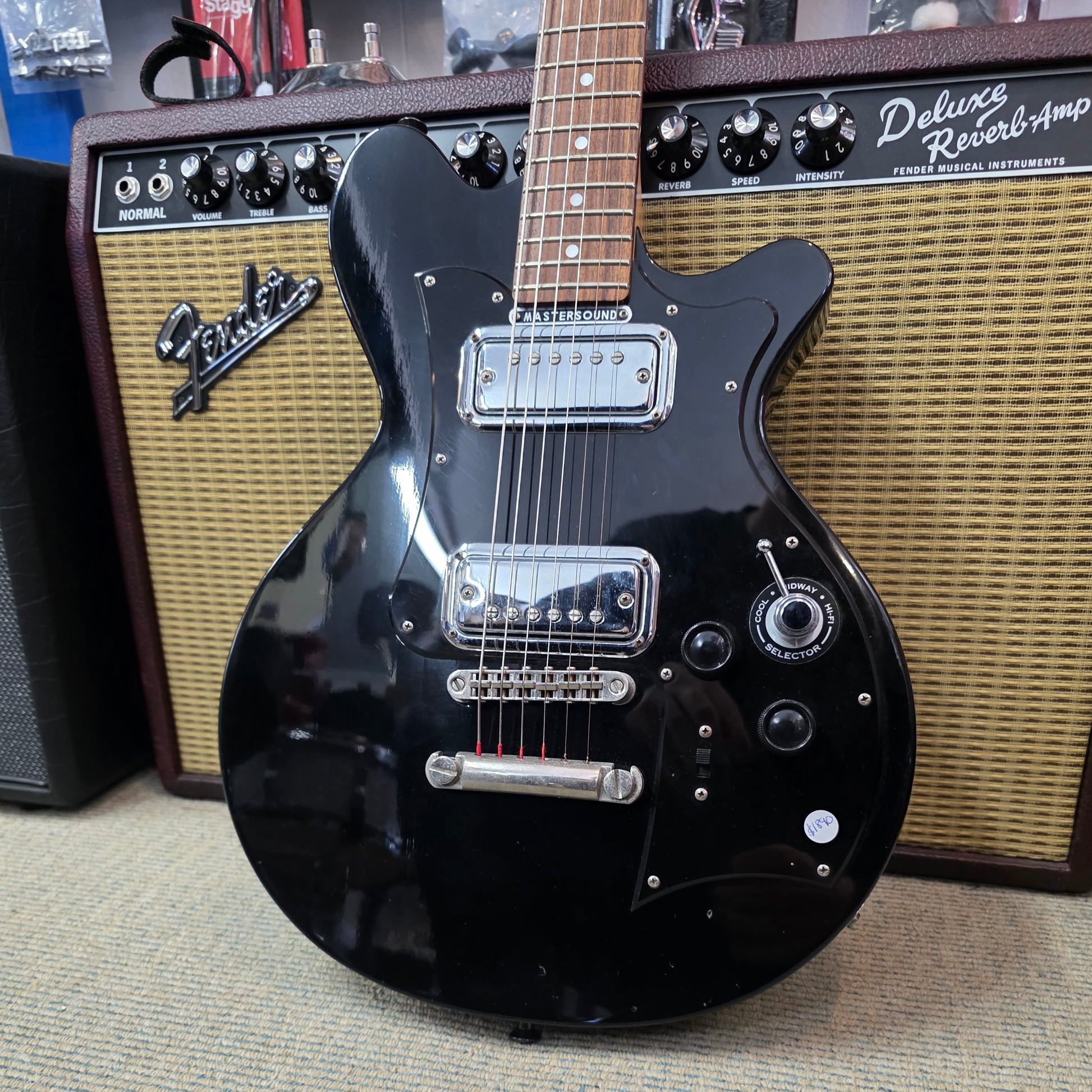Australian made double cutaway electric guitar. With a 24 3/4" scale length, it features a Bunya Pine body, blackwood neck, and rock maple headstock. The rotary 3-way switch gives the guitar a classic look. The bridge pickup is a vintage output humbucker and the neck pickup is a single-coil similar sounding to early model telecasters but is housed in a humbucker-sized cover.